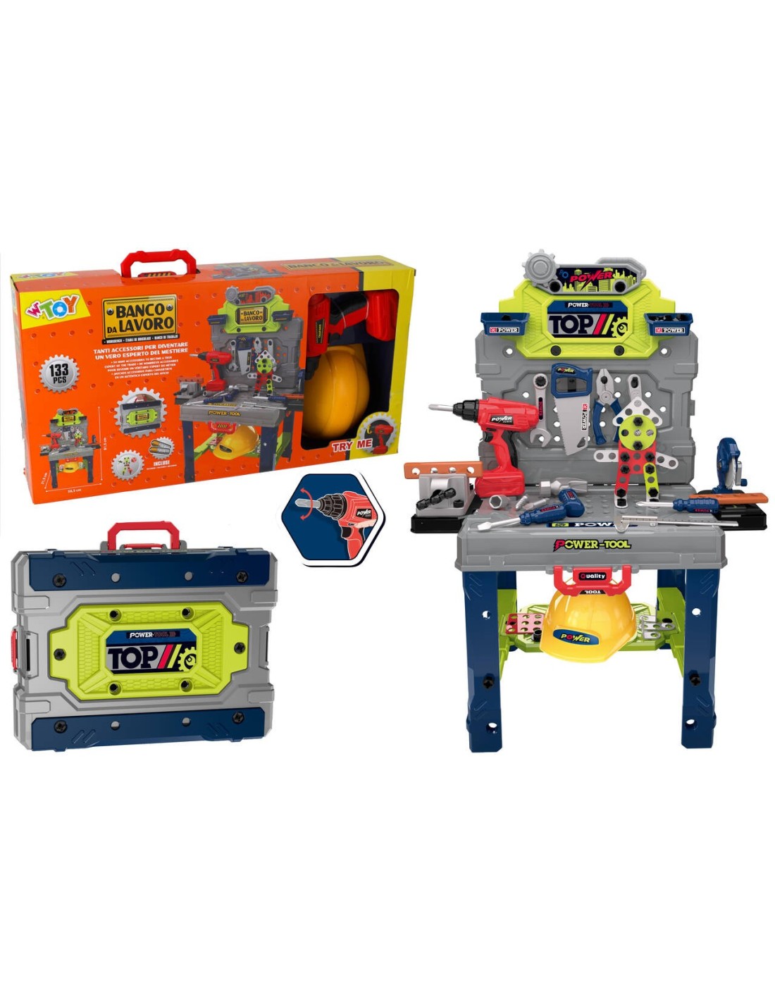 Grazie ai 133 pezzi inclusi, l’esperienza è incredibilmente realistica. Indossa il casco di sicurezza e impugna il trapano funzionante per sentire il brivido di una vera officina in casa!