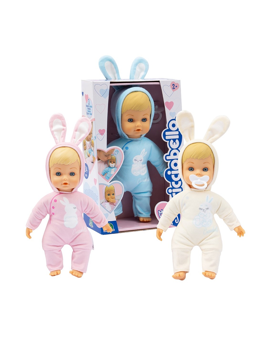 La confezione include un ciuccio per prendersi cura di Cicciobello! Il pigiamino ha delle simpatiche orecchie che spuntano dal cappuccio!