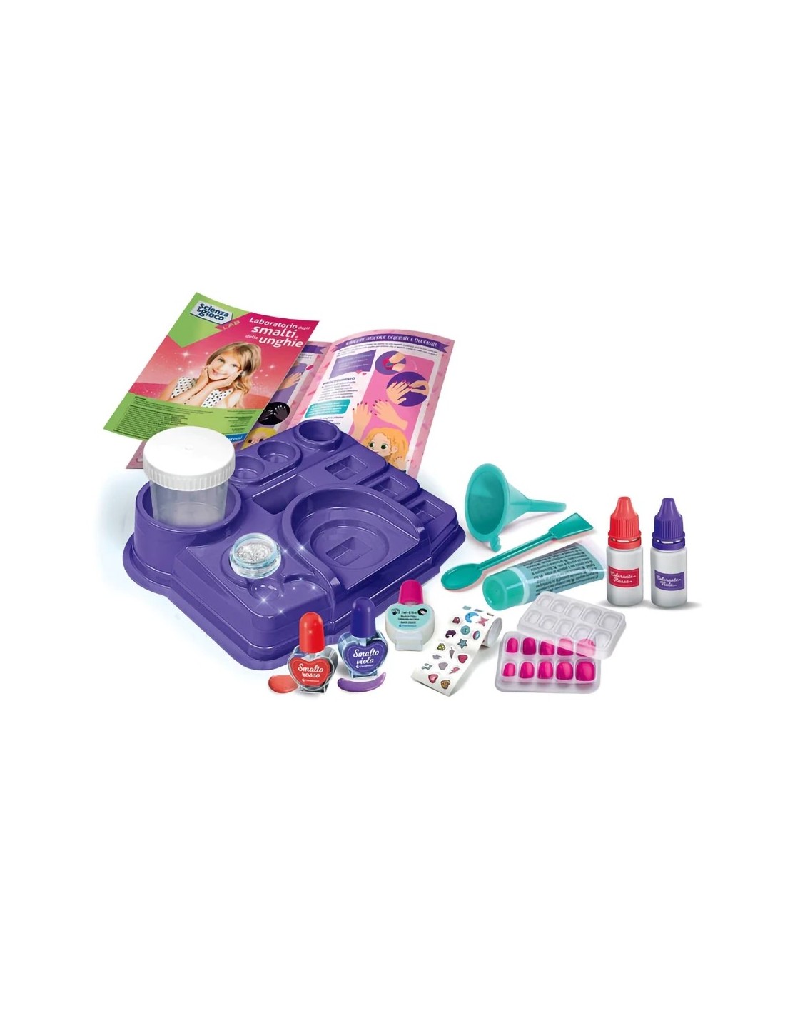 Un divertente kit scientifico per avvicinarsi alla nail art e alla cura delle unghie creando smalti e motivi alla moda, scoprendo i segreti della cura delle unghie