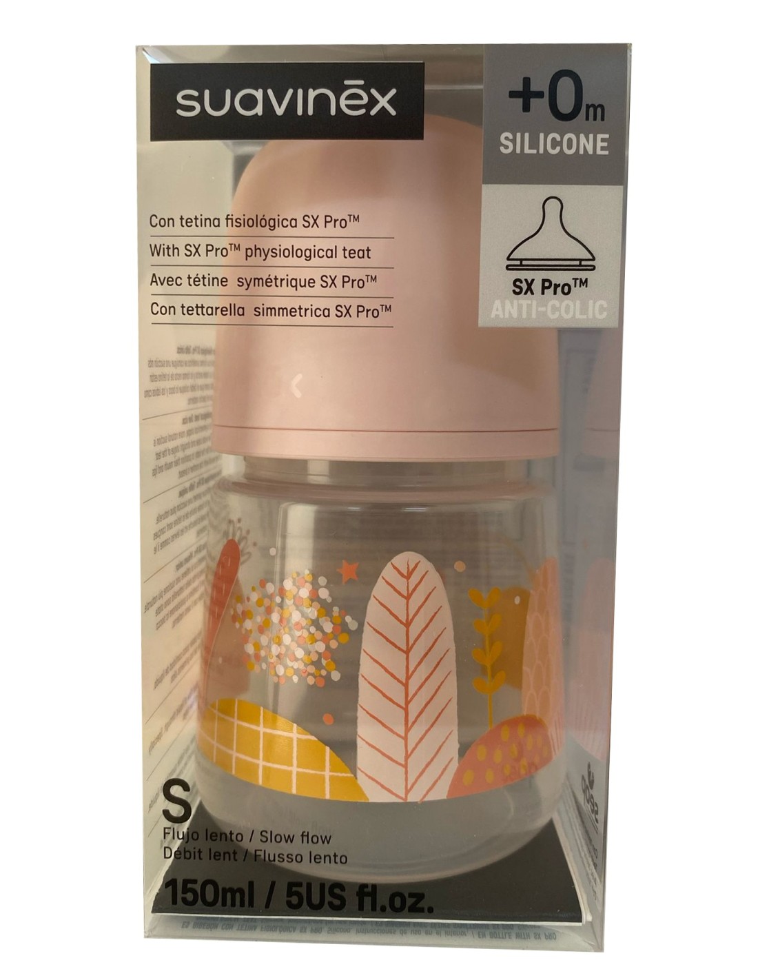 Biberon con tettarella simmetrica SX pro, flusso lento da 150ml Rispetta le raccomandazioni degli esperti per non interferire nello sviluppo del cavo orale. Lascia più spazio alla lingua nel cavo orale affinché la suzione sia il più naturale possibile Favorisce la posizione corretta della bocca, della lingua e della mandibola. Età consigliata 0 mesi +