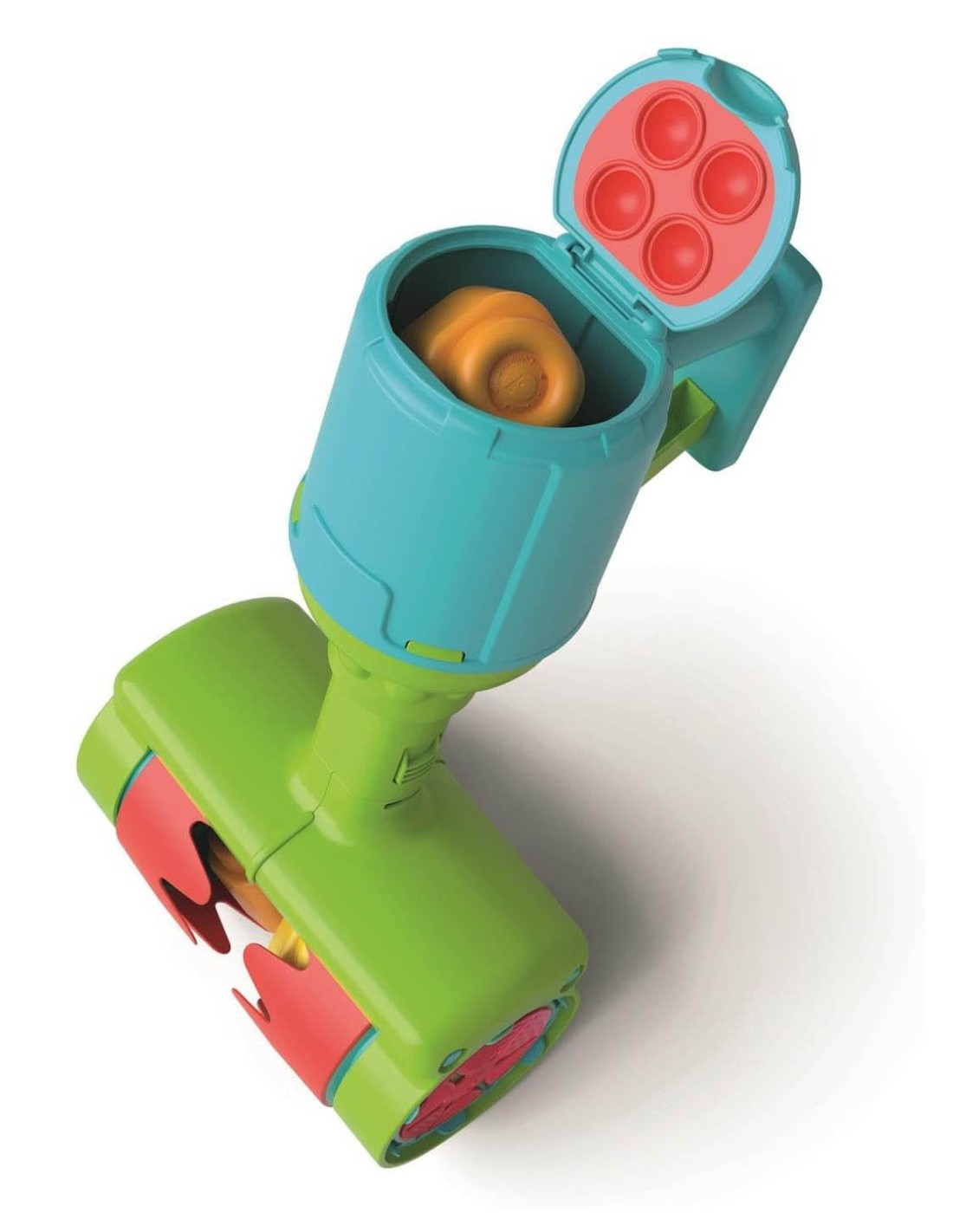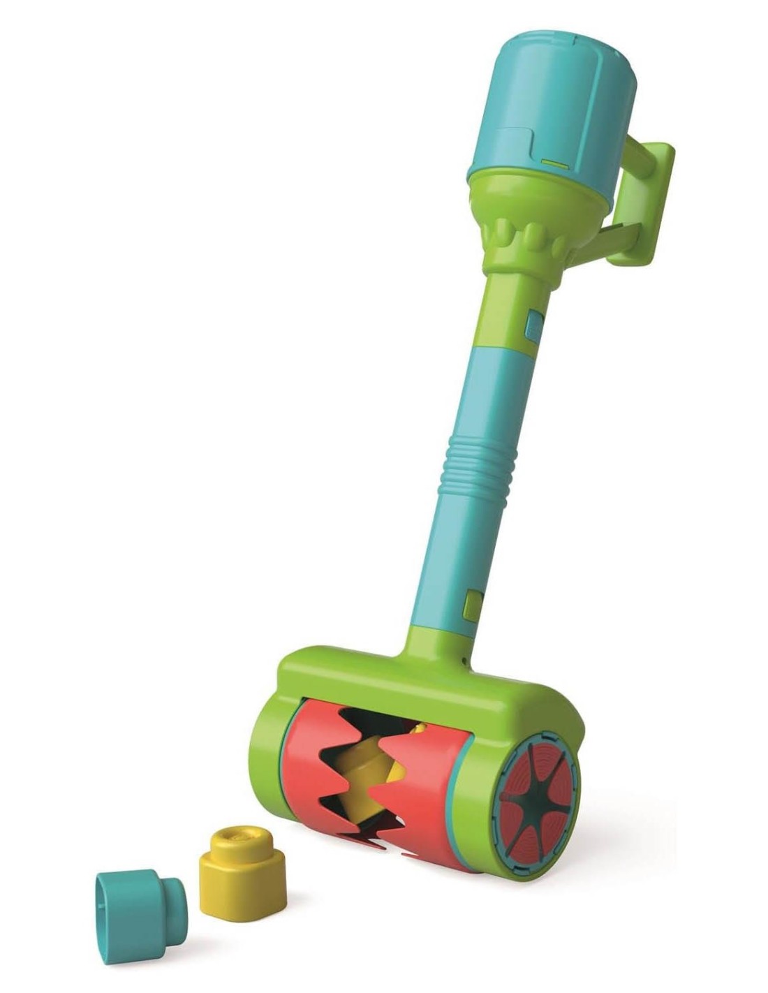 Un aspirapolvere di design Clemmy che cattura i mattoncini e stimola la sensorialità e il gioco imitativo.