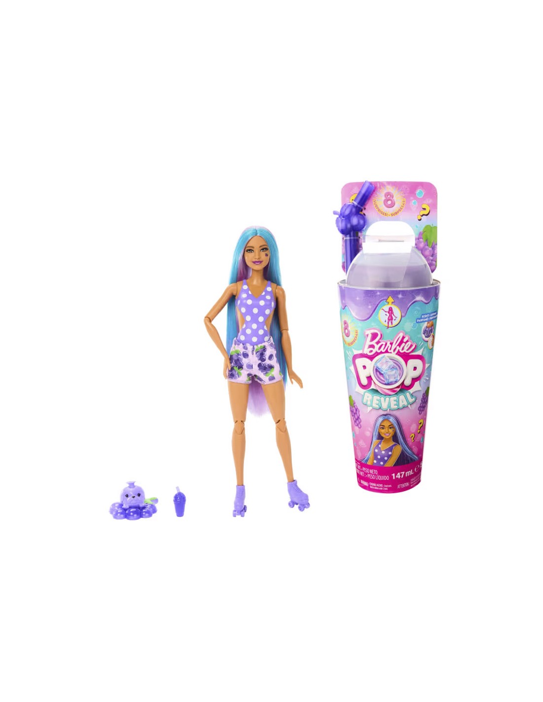 Apri la confezione e troverai una Barbie snodata che profuma di spuma d'uva, un cucciolo profumato da strizzare e accessori che si abbinano al gusto di frutta!