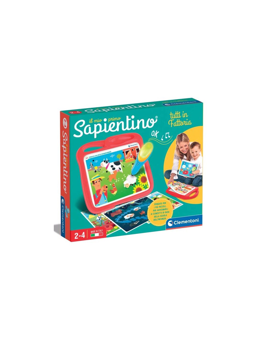 Il mio primo sapientino tutti in fattoria aiuta i bambini a sviluppare le competenze di base, come il linguaggio, il riconoscimento dei colori, le conoscenze di animali e tanto altro