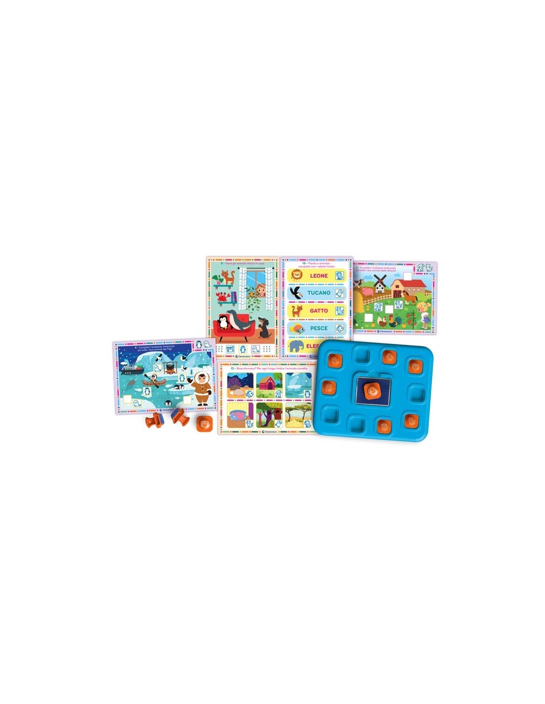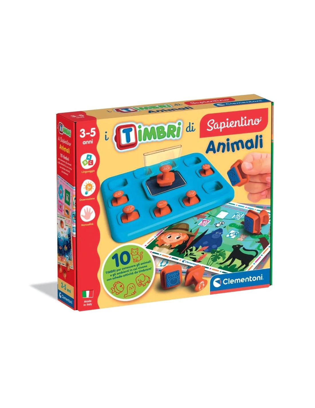 Contiene 10 timbri ergonomici facili da impugnare, pensati per allenare la coordinazione oculo-manuale e la memoria visiva.