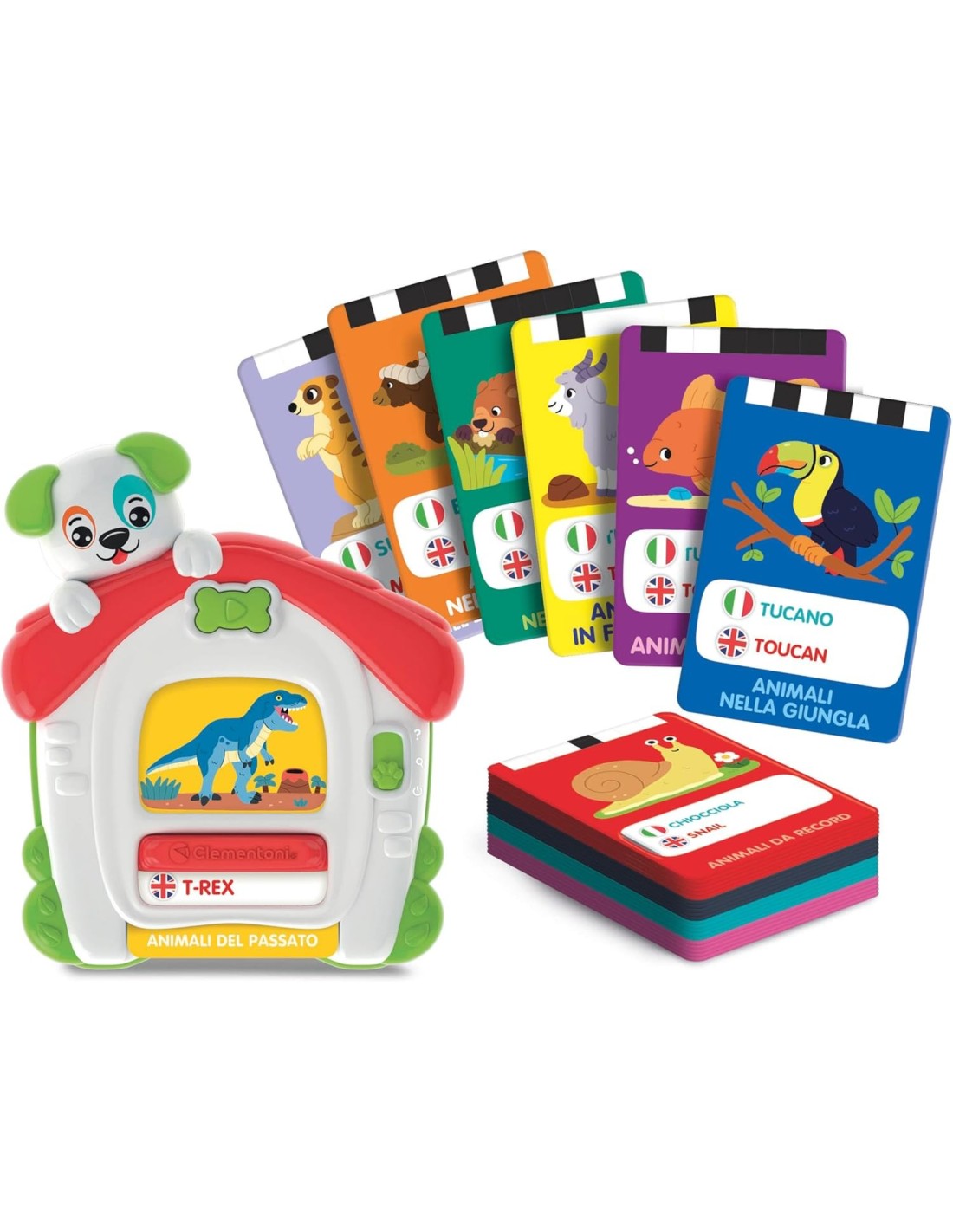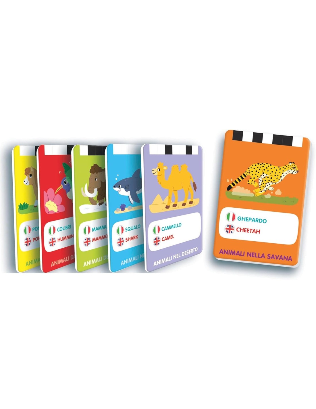 Contiene 50 carte double-face per un totale di 100 animali da scoprire: basta inserirne una e premere il bottone per ascoltare il nome in italiano e in inglese.