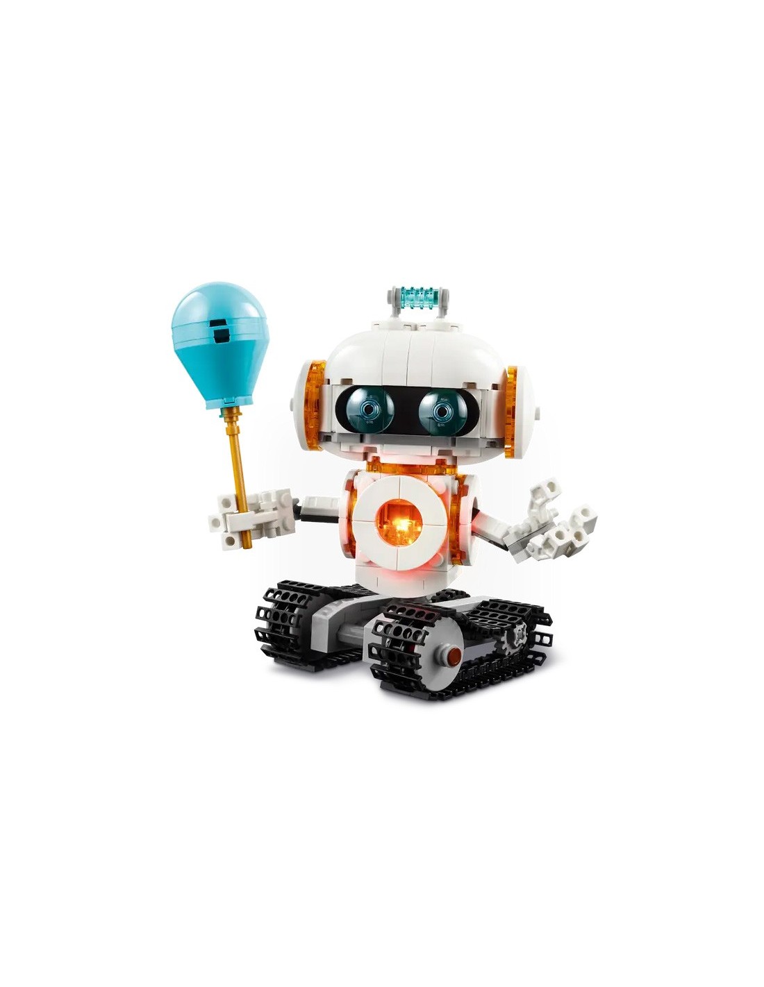 I fan Lego possono costruire e ricostruire 3 diversi set di gioco spaziali ricchi di azione con gli stessi mattoncini: un robot giocattolo su binari mobili, un cane spaziale snodabile con un osso e un disco volante, o un razzo spaziale. (i modelli non possono essere costruiti contemporaneamente)