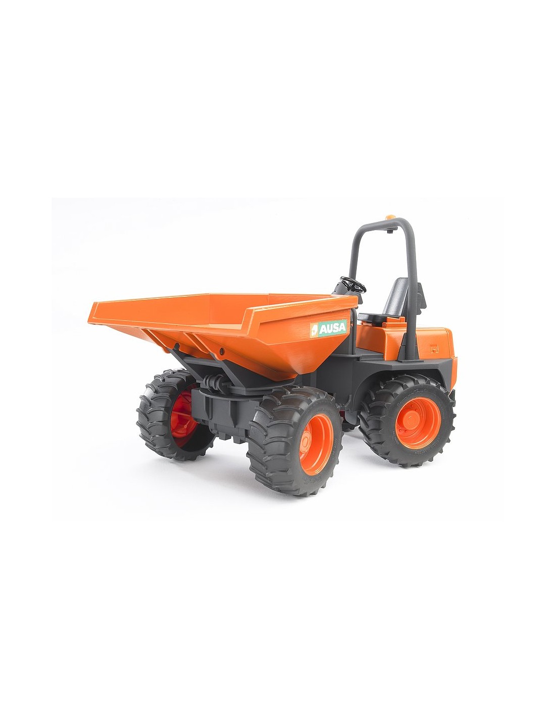 Il modello Bruder trae ispirazione dall'originale dumper D 350 AHG prodotto dall'azienda spagnola AUSA. Come il fratello maggiore, il dumper BRUDER è dotato di sterzo articolato, cassone rotante e, di nuovo come l?originale, di straordinarie capacità fuoristrada.