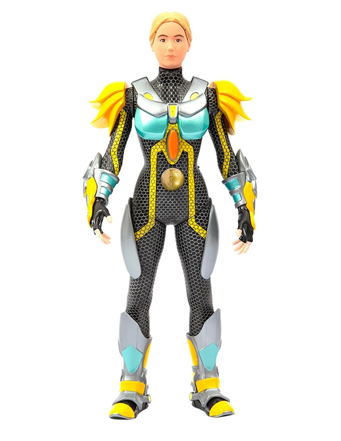 L’armatura effetto silver, rimovibile e ricca di dettagli metallici, completa il look dell’eroe, rendendo questa action figure ancora più fedele alla serie TV. L’effetto argento a rete sulla tuta aggiunge un tocco di realismo e avventura, perfetto per i fan più appassionati.