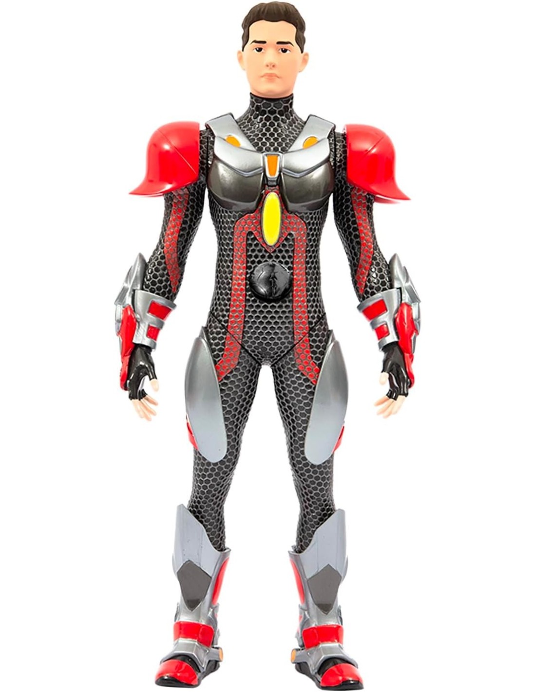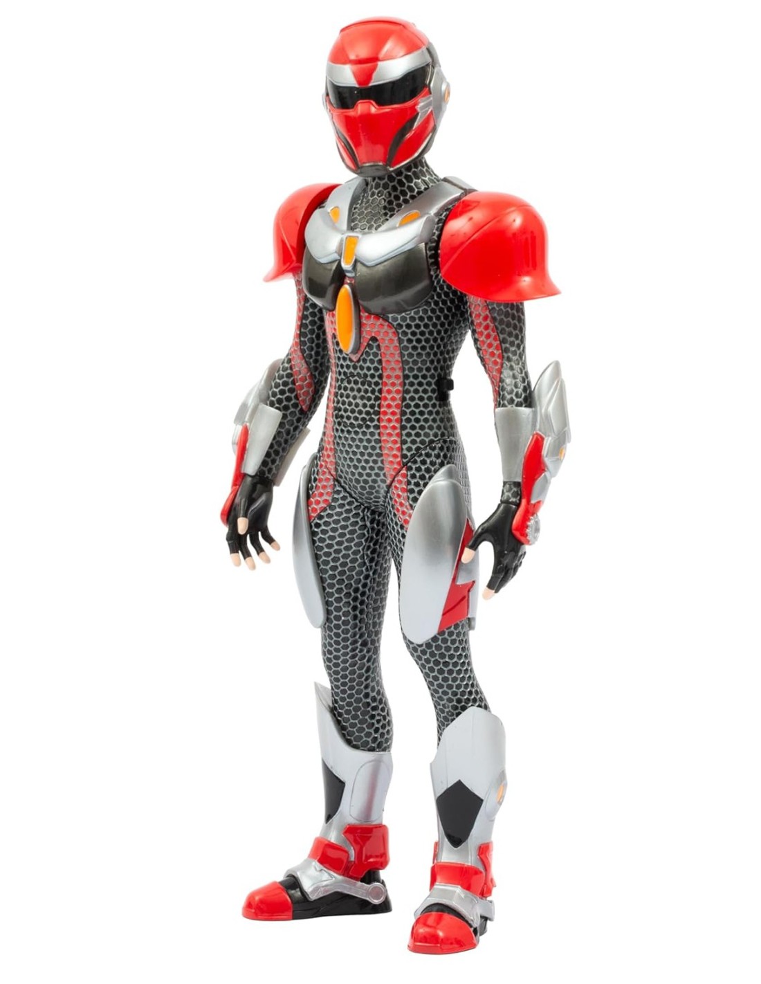 L’armatura effetto silver, rimovibile e ricca di dettagli metallici, completa il look dell’eroe, rendendo questa action figure ancora più fedele alla serie TV. L’effetto argento a rete sulla tuta aggiunge un tocco di realismo e avventura, perfetto per i fan più appassionati.