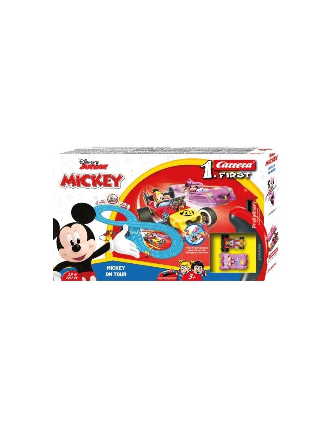 Divertimento e brividi con Topolino e Minnie! Il nuovo set Carrera First consente ai piloti principianti dai 3 anni in su di raggiungere la velocità sul circuito da corsa blu brillante da 2,4 m con gli amati eroi Disney Topolino e Minnie.