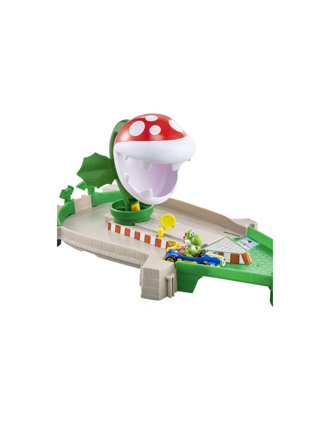 Il playset Pianta Piranha include una replica in metallo pressofuso del veicolo Mario Kart con Yoshi attaccato, che i bambini possono lanciare per vedere se riescono a superare la Pianta Piranha in attacco, proprio come nel gioco, ma questa volta su una pista Hot Wheels!