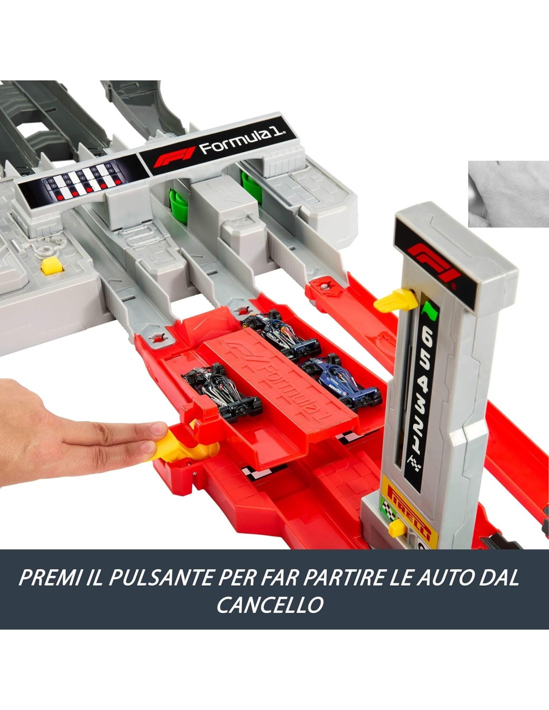 Le macchinine incluse presentano i design autentici dei veri team di Formula 1 Oracle Red Bull Racing, MoneyGram Haas F1 Team e Williams Racing.