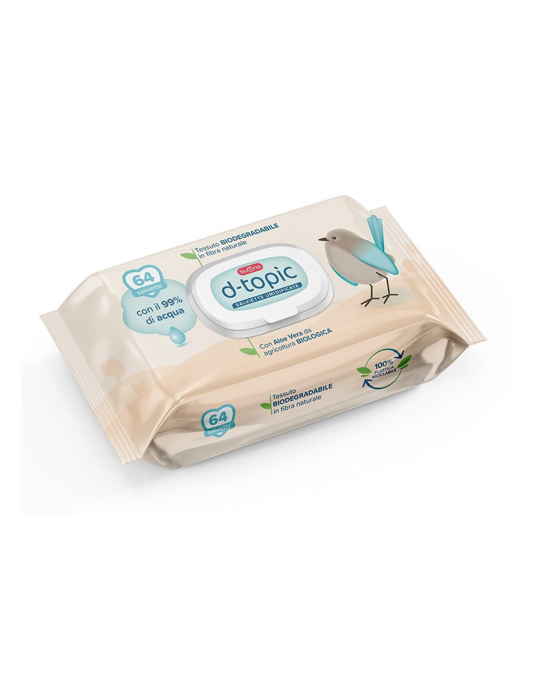 D-Topic salviette umidificate con Aloe Vera da agricoltura biologica, sono composte da tessuto biodegradabile in fibra naturale.