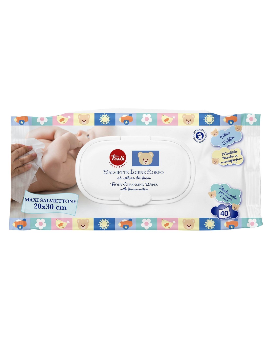 Le Salviette Igiene Corpo Trudi Baby Care sono state studiate partendo dalla formulazione e dal tessuto delle classiche Salviettine Trudi Baby Care per il cambio del pannolino.