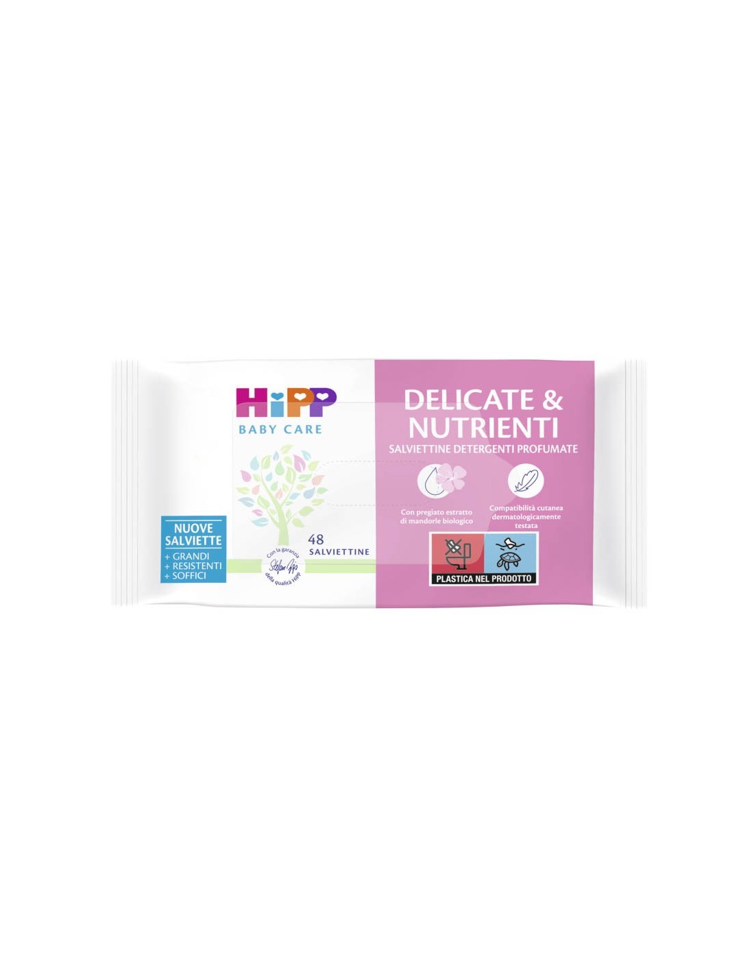 Le Salviettine DELICATE & NUTRIENTI HiPP Baby Care sono indicate per la detersione della pelle sensibile di neonati e bambini. Imbevute in una lozione arricchita da estratto di mandorle biologico, puliscono con delicatezza e lasciano la pelle dolcemente profumata.