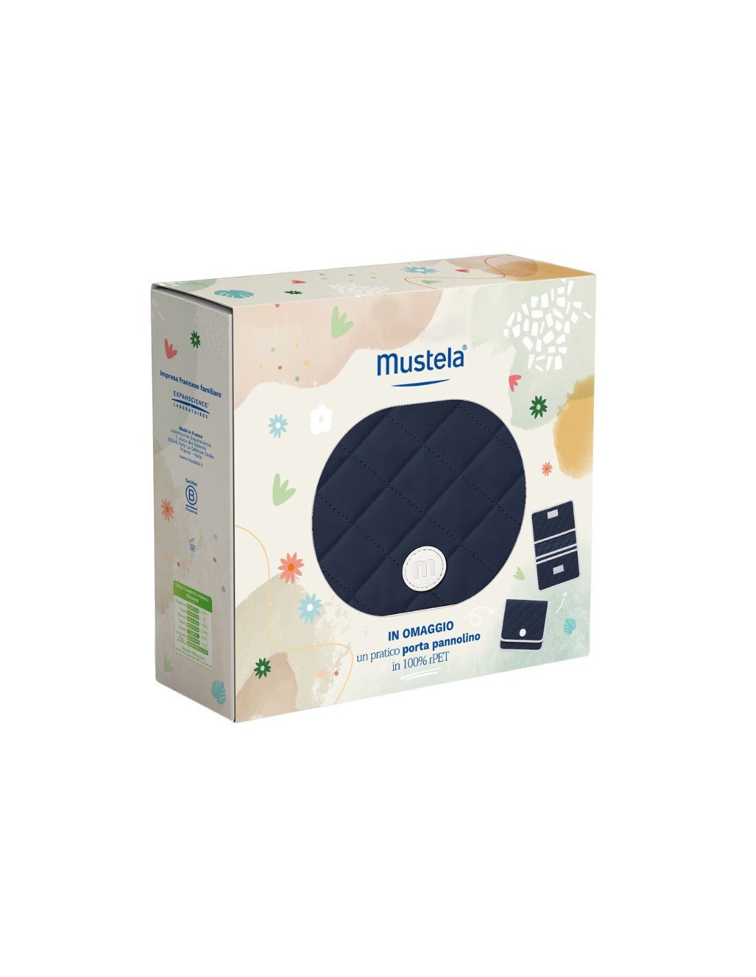 Porta Pannolino in 100% rPET (omaggio) – pratico, morbido e richiudibile, perfetto per portare con sé i prodotti Mustela anche fuori casa. Realizzato con materiali riciclati e resistenti, per un gesto di cura verso il pianeta.
